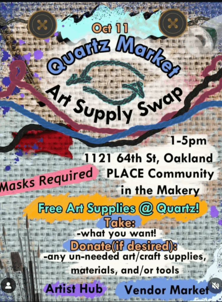 Another event ! @place.community on 10/11 with my family 🥰 @quartzoakland 🤘🏽🌈🫧 for another Art Supplies Swap 🔥🔥🔥